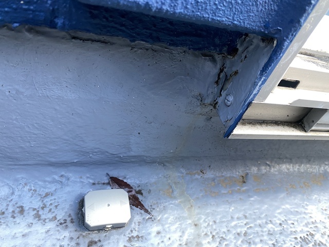 雪止めの金属部分以外にも青色が出ていて雨水の滞留があると考えれます。