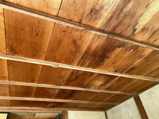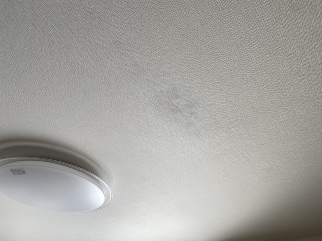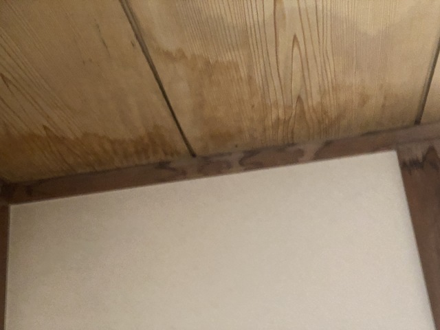 この下の2階天井押入れ付近が、雨でにじんでいます。