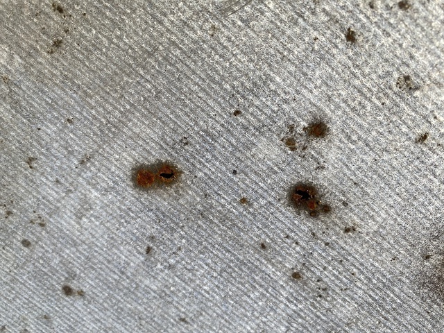 雨漏りしたということで屋根の確認をしたら、屋根材に錆があり、穴が開いていました。